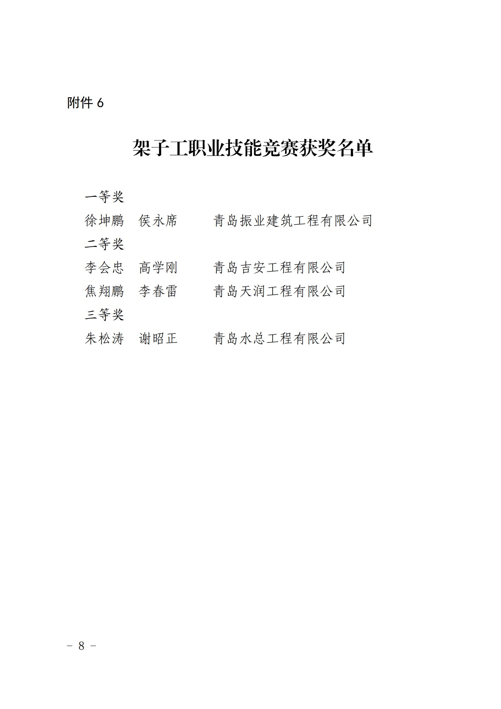 架子工职业技能竞赛获奖名单