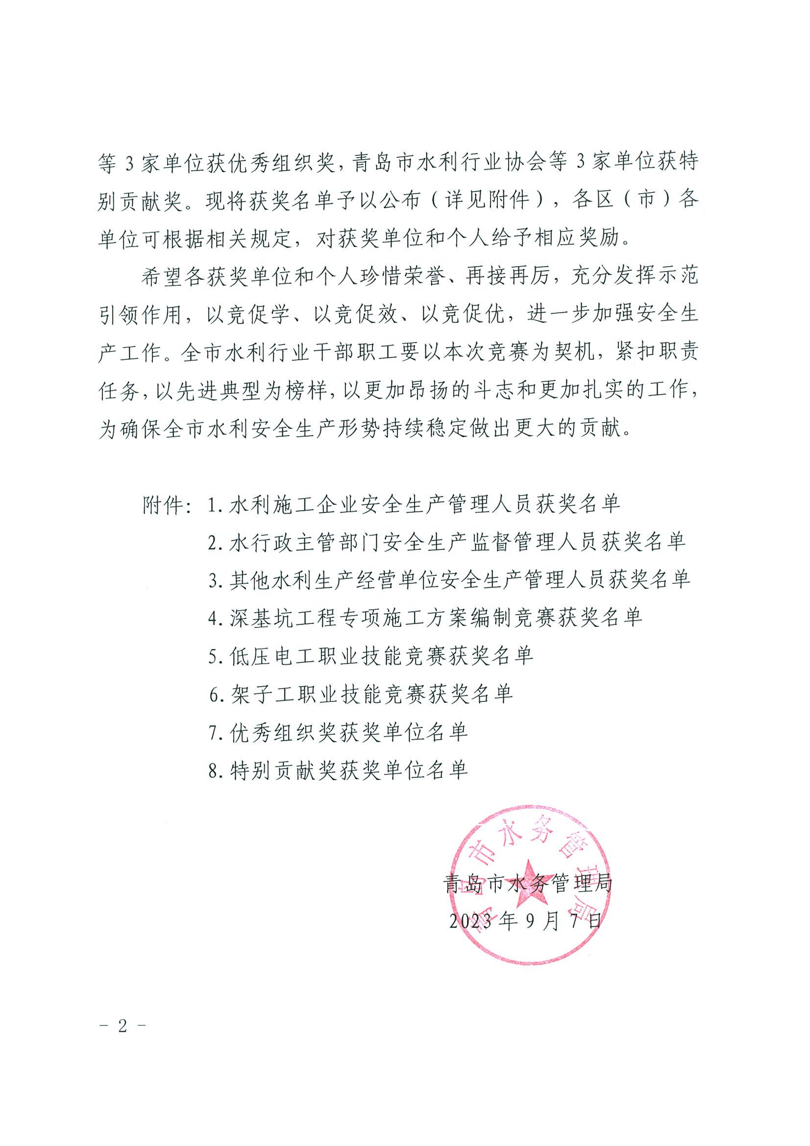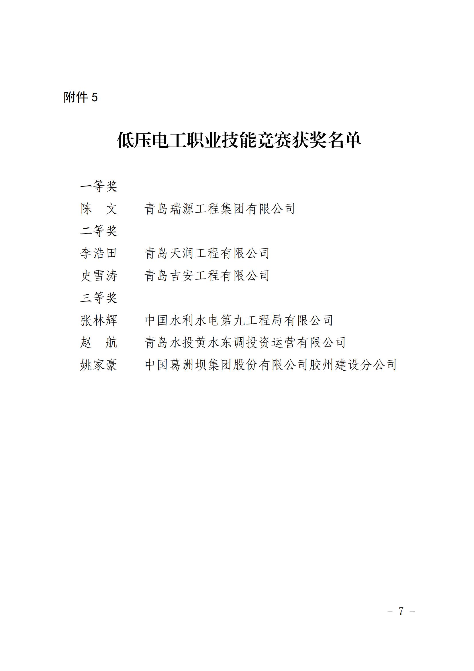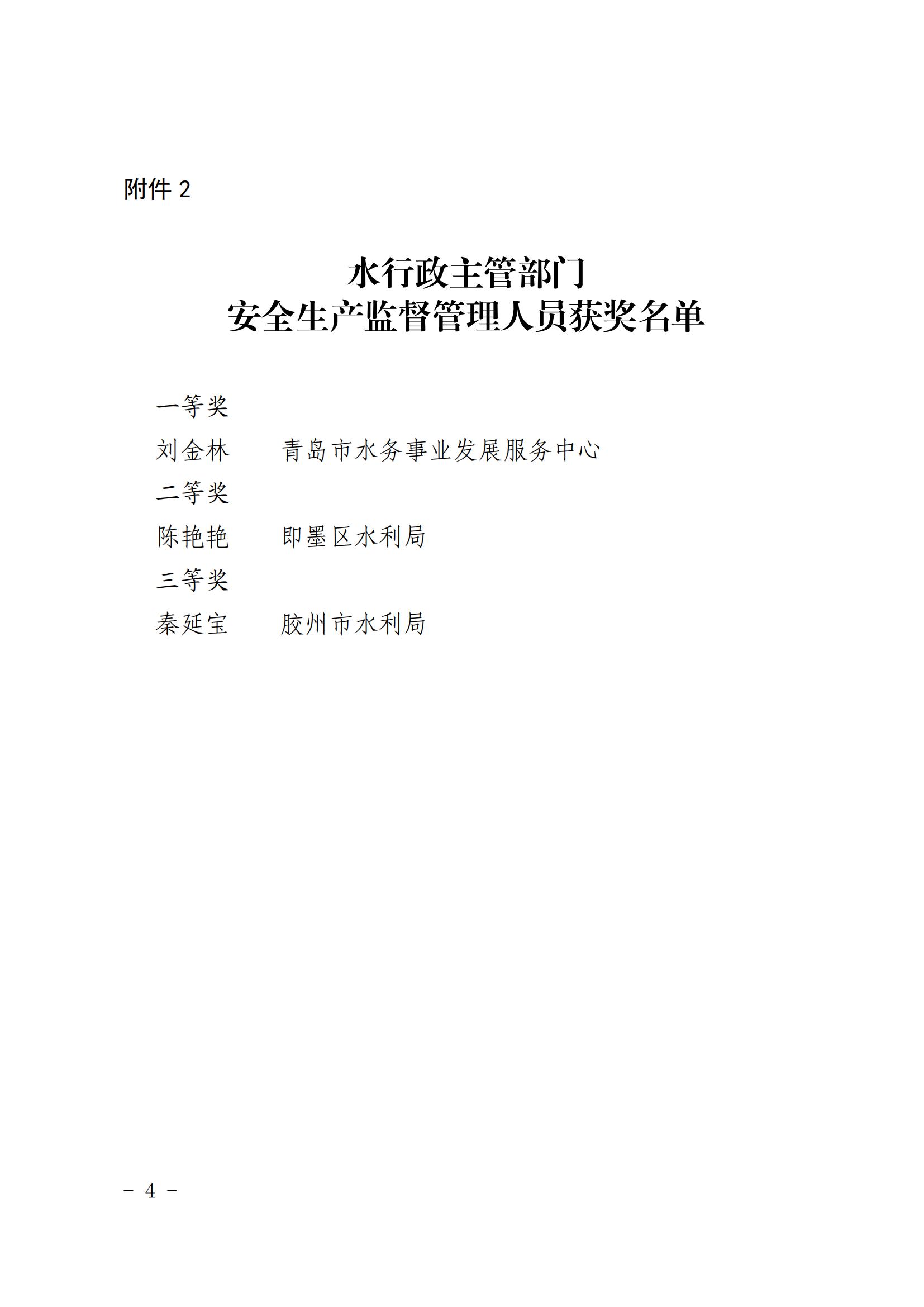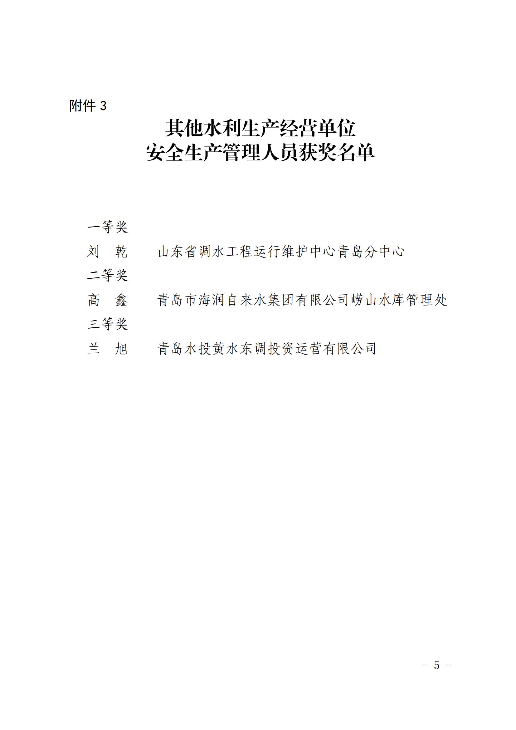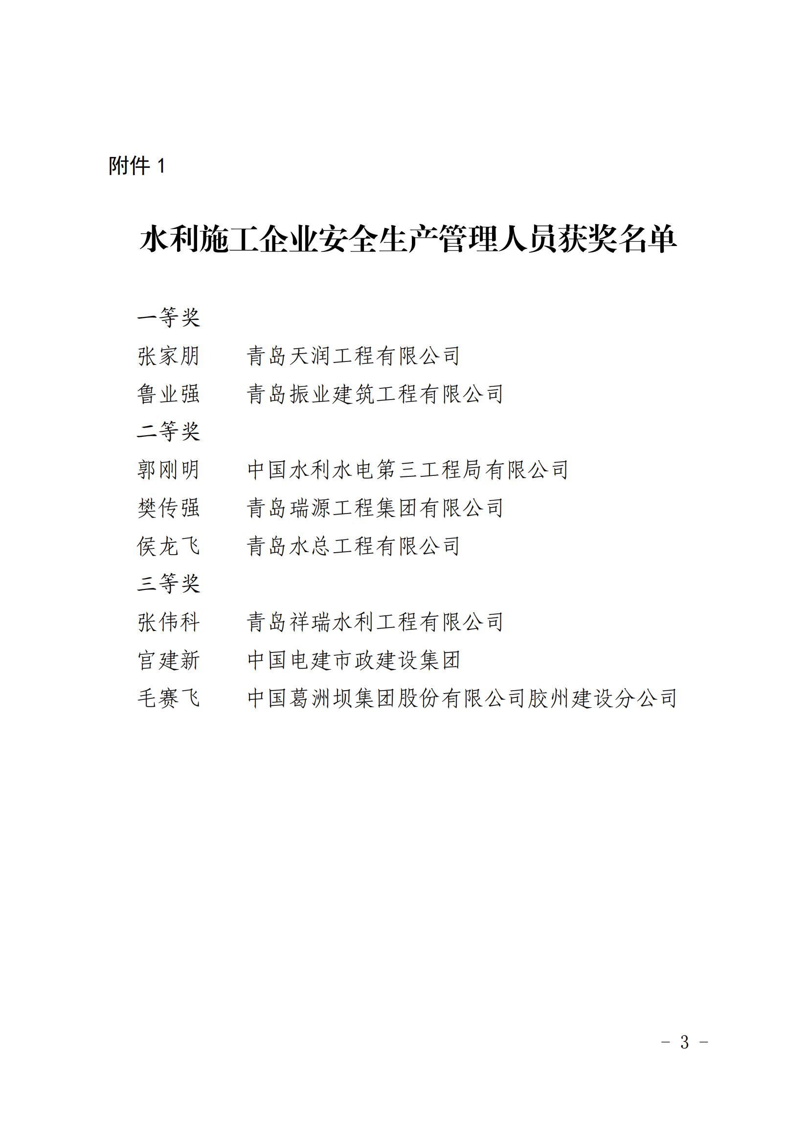 水利施工企业安全生产管理人员获奖名单
