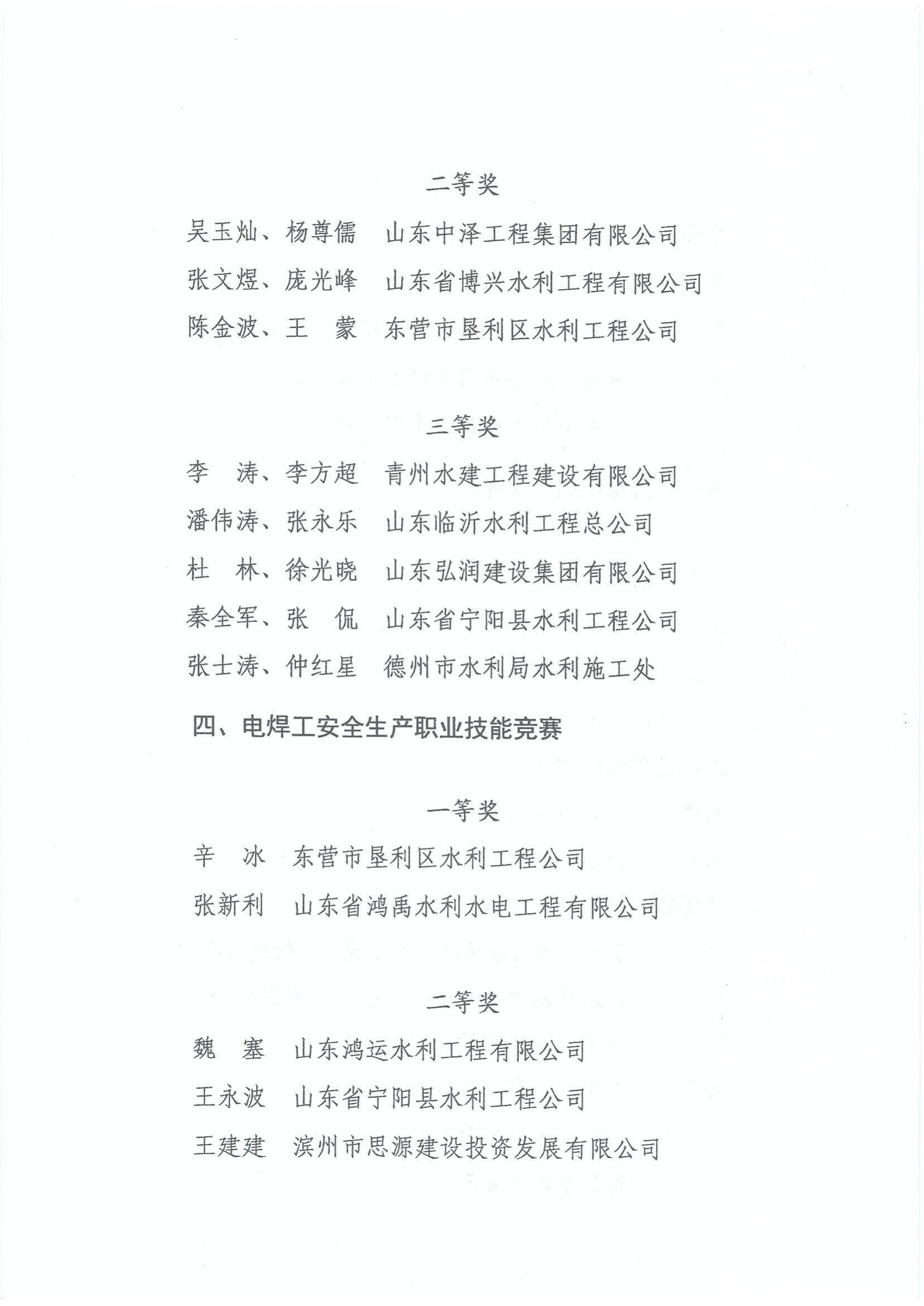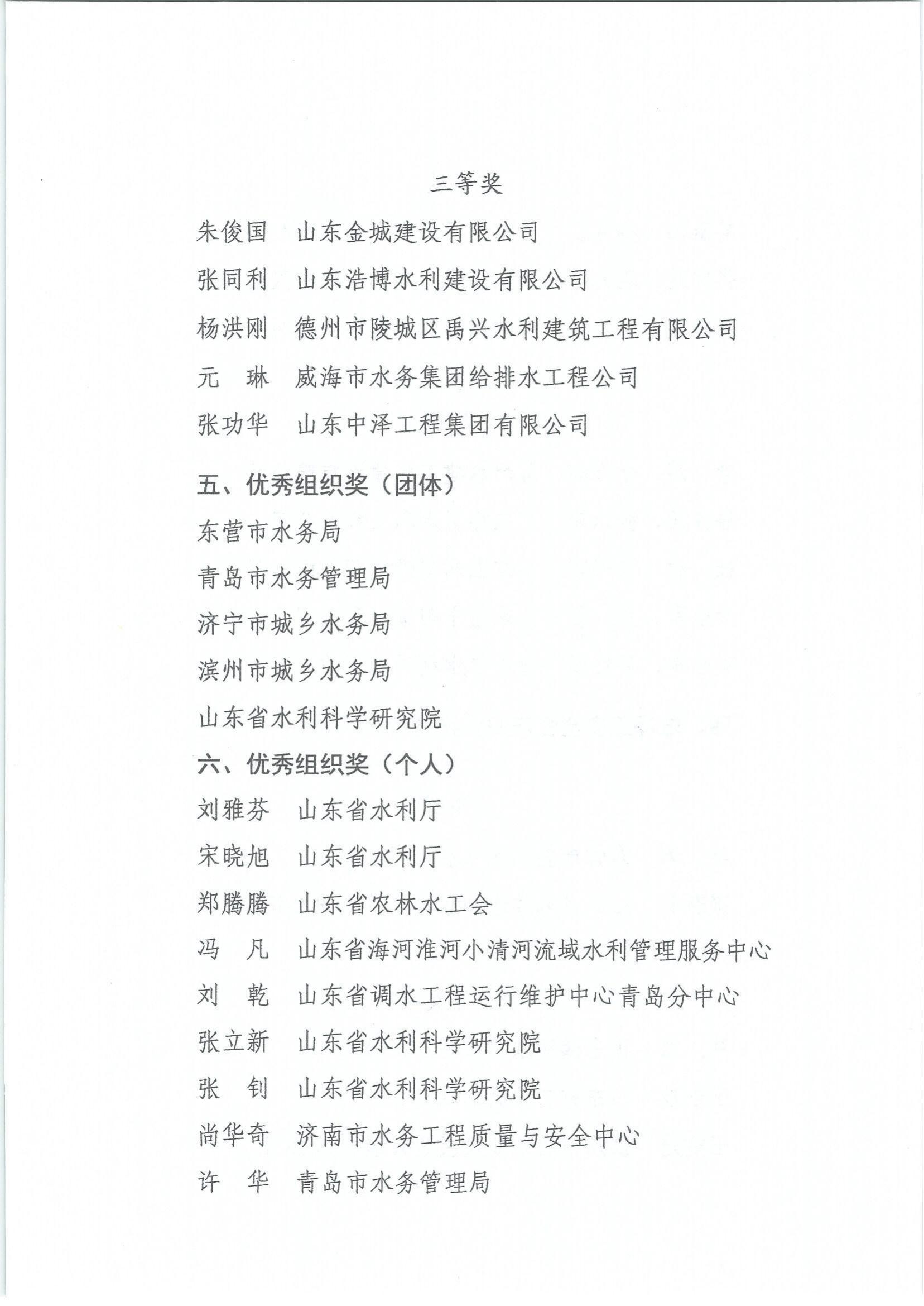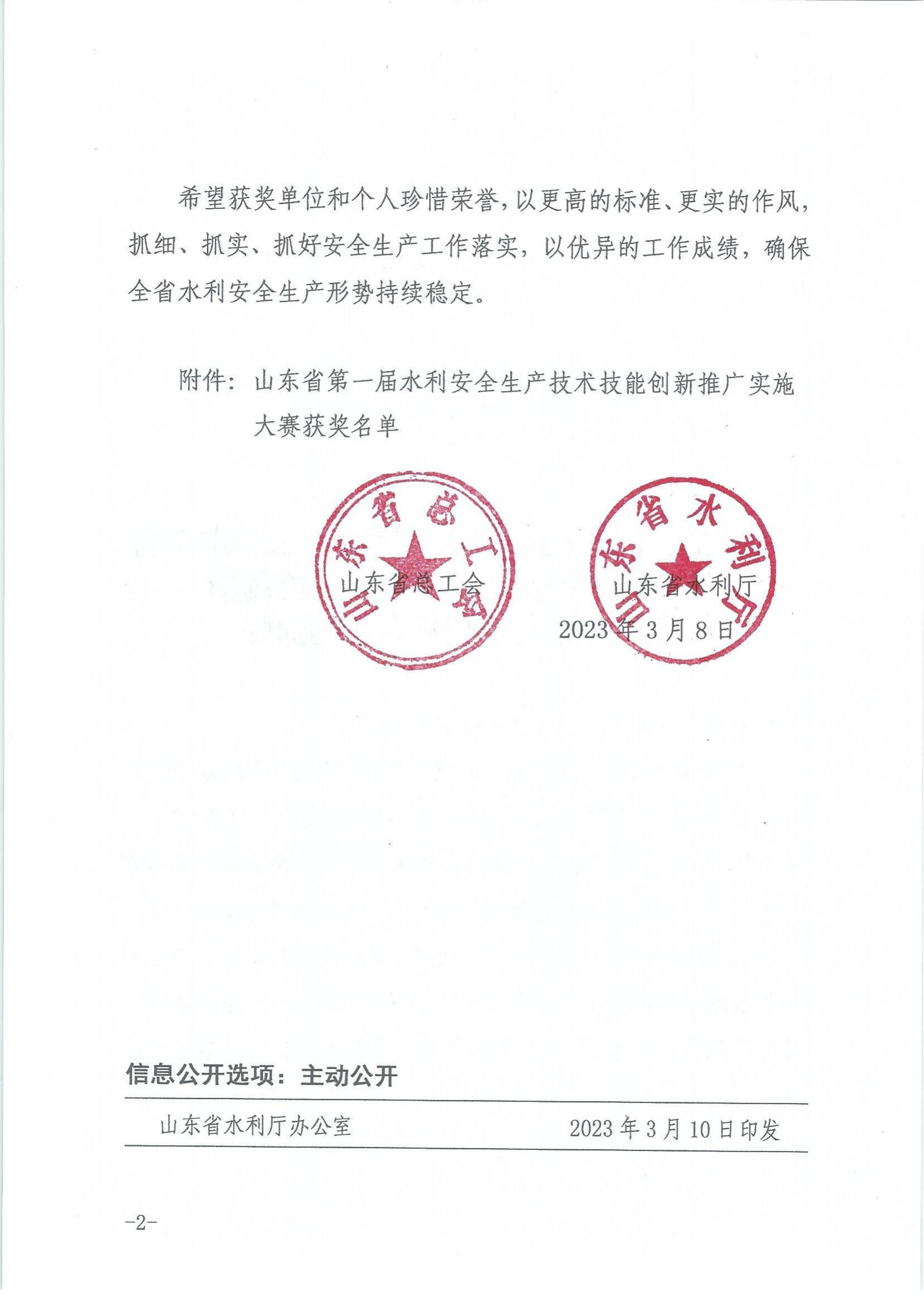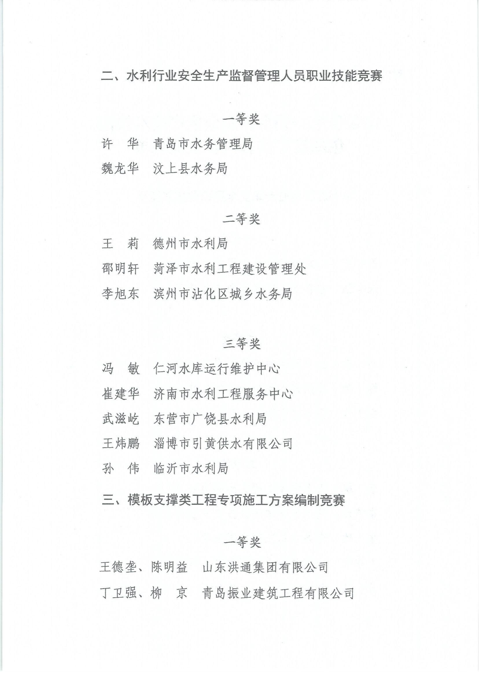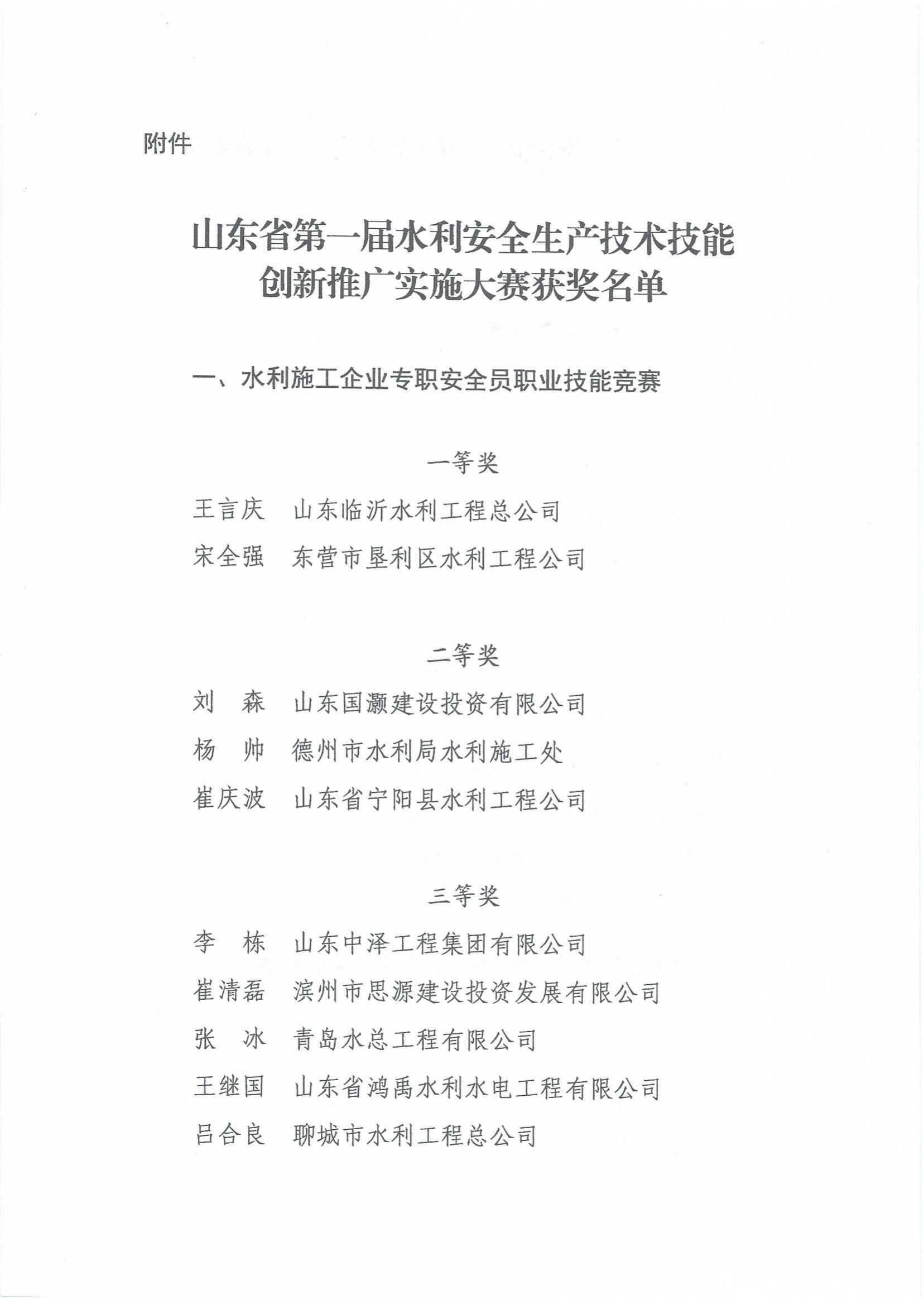 山东省总工会山东省水利厅关于公布山东省第一届水利安全生产技术技能创新推广实施大赛获奖名单的通知
